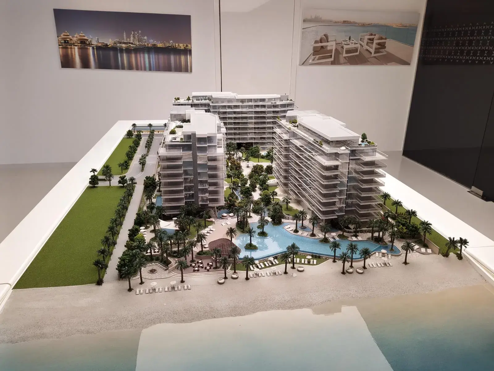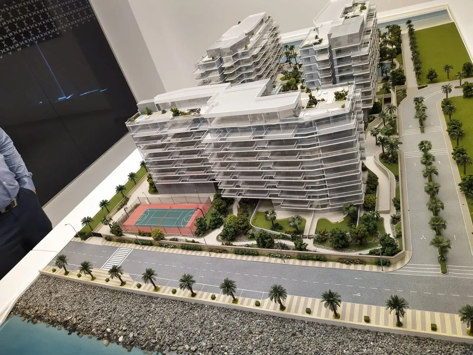 Scale model of a beachfront project combining a luxury hotel and exclusive penthouse residences. The architecture blends seamlessly with the coastal setting, delivering a refined concept that unites hospitality excellence, privacy, and long-term asset value.